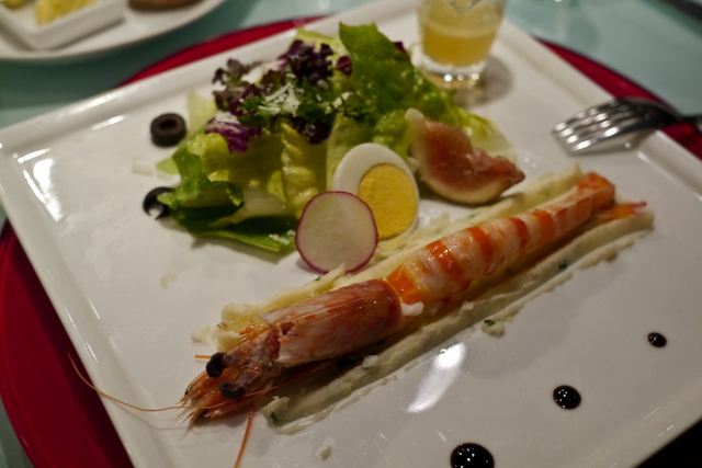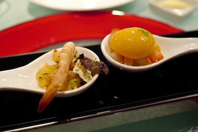 開胃菜:芒果晶球水果沙沙、鮮蝦鳳梨乳酪